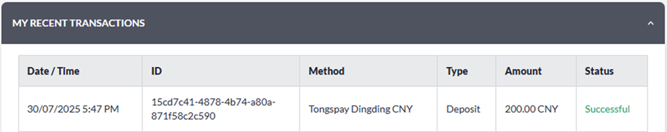- amount of payment must same with requested, please remember to tick the[无需领取即可到账] so the fund will auto credit to user account