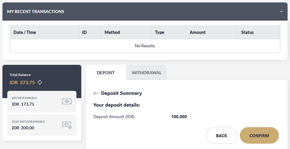- Your transaction status will be display on MY RECENT TRANSACTIONS