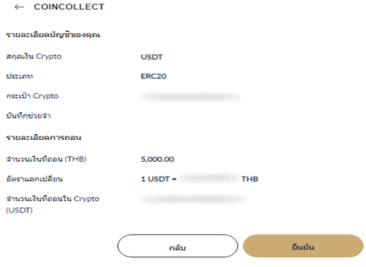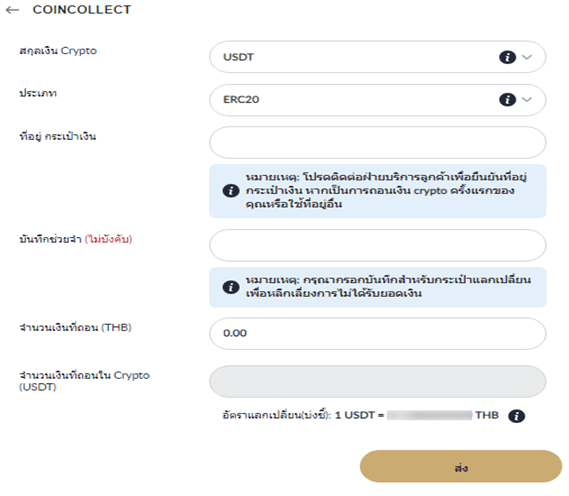 - จากนั้นเลือกเมนู "การถอน" แล้วเลือก "COIN COLLECT"